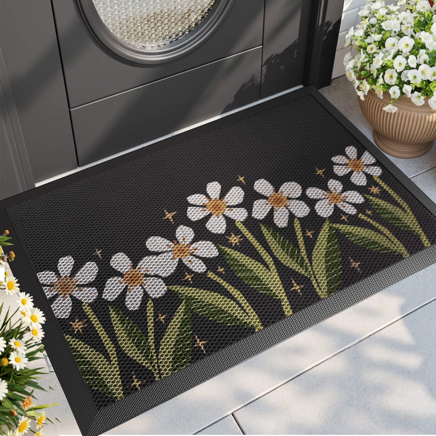PABUBE Outdoor Doormat, Heavy Duty Non-Slip Spring Welcome Mat, Low Pile & Dirt Trapper Front Door Mat Outside, Colorful Floral Patio Outdoor Mat for Front Doors, 17" x 30"